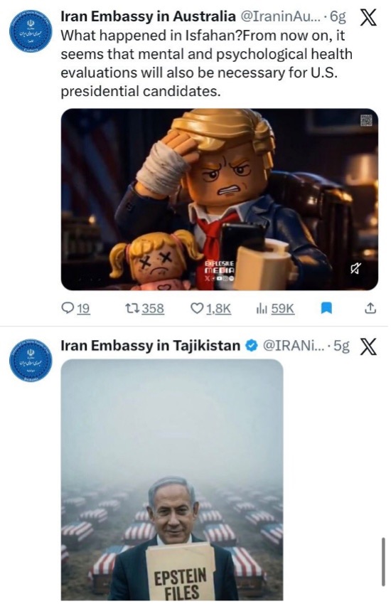 Tre sembrano essere i prodotti principali che sono divenuti più popolari: i famigerati tweet delle diverse ambasciate iraniane in giro per il mondo e soprattutto nel cosiddetto Sud Globale; brevi video realizzati con l’intelligenza artificiale con riferimenti alla guerra; gli ormai celeberrimi video con protagonisti personaggi della Lego. Utilizzando le tecniche del blasting – insabbiare il proprio interlocutore con sottile sarcasmo e derisione – e del trolling – messaggi volutamente provocatori, irritanti, fuori tema o semplicemente senza senso – numerosi account X delle ambasciate della Repubblica Islamica hanno cominciato a rispondere alle dichiarazioni della Casa Bianca e di Israele, guadagnando rapidamente una visibilità finora insperata. Ai contenuti lunghi e spesso disarticolati con cui Trump comunica sempre più frequentemente, questi autori rispondono con frasi incisive, taglienti e, soprattutto, umoristiche.